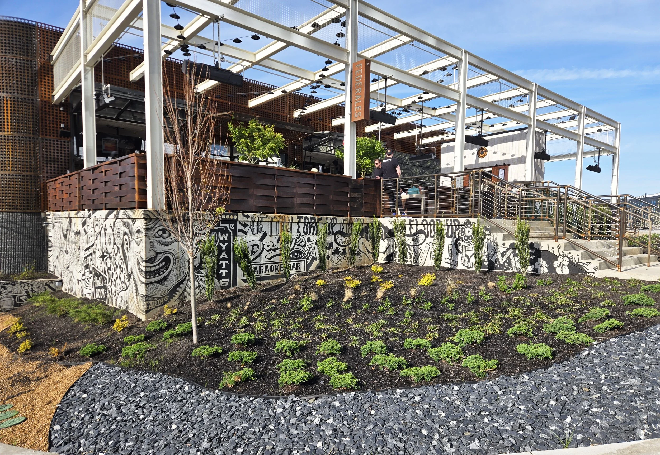 LT Design Studio was selected to team up with a local architecture firm on the adaptive re-use of a small office building in the Gulch neighborhood of Nashville. The existing building was transformed into an exciting new restaurant with a large outdoor terrace and fantastic views. The topography of the site provided an opportunity for a dramatic landscape design at the front of the site, and on a prominent corner of Division Street. The elimination of the existing surface parking lot allowed for the addition of much needed green space.